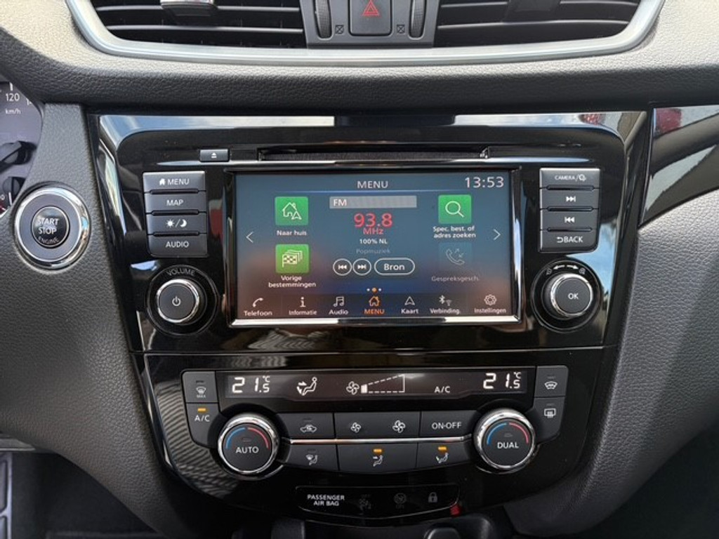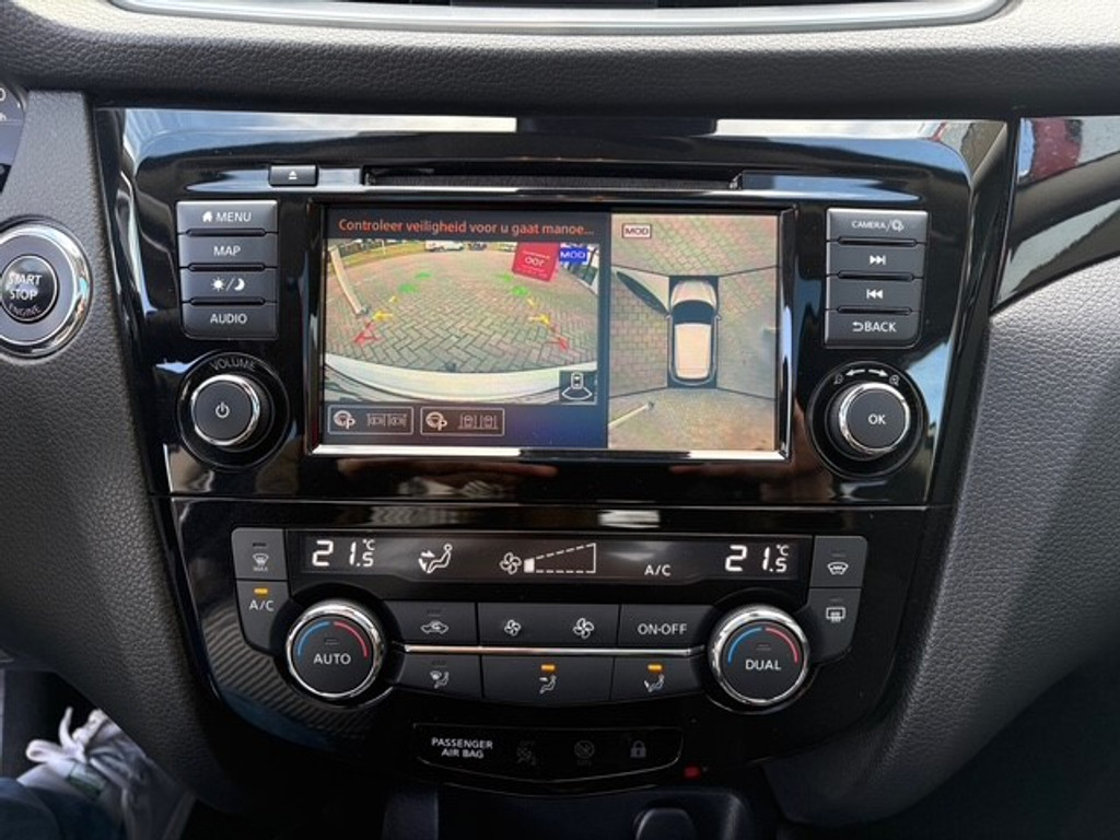 Door het combineren van beelden van vier camera's, biedt de 360 graden camera een naadloos en gedetailleerd beeld van de hele omgeving rondom deze auto. Adaptive cruise control is een comfortabele en veilige optie. Het systeem reguleert de snelheid en houdt automatisch afstand tot uw voorligger. Voor een veilige rit is het belangrijk dat uw handen het stuur vasthouden en uw ogen gefocust blijven op de weg; daarom kunt u het audio-installatiesysteem, met DAB-ontvangst en full map navigatiesysteem bedienen met het stuurwiel of via spraakbediening. Bij de luxe van deze auto hoort ook automatische airconditioning. Superstrak parkeren wordt een eitje dankzij de parkeersensoren. De uitrusting van deze Nissan is met WIFI-hotspot, regensensor, keyless entry, automatisch dimmende binnenspiegel en verstelbaar stuur behoorlijk compleet.